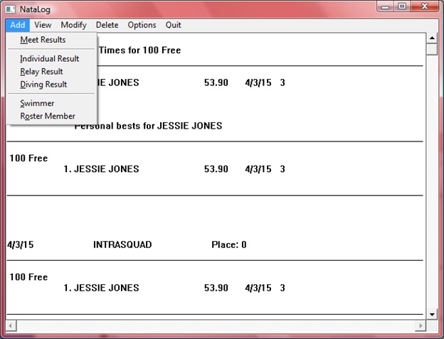 Jeff Bogda Founder Natalog swimming software started as Jeff's senior project at DePauw University in 1996. Back then, it ran only on Windows DOS and looked much different. Jeff has watched as both Natalog and swimming have gotten faster and more technical over the years. |