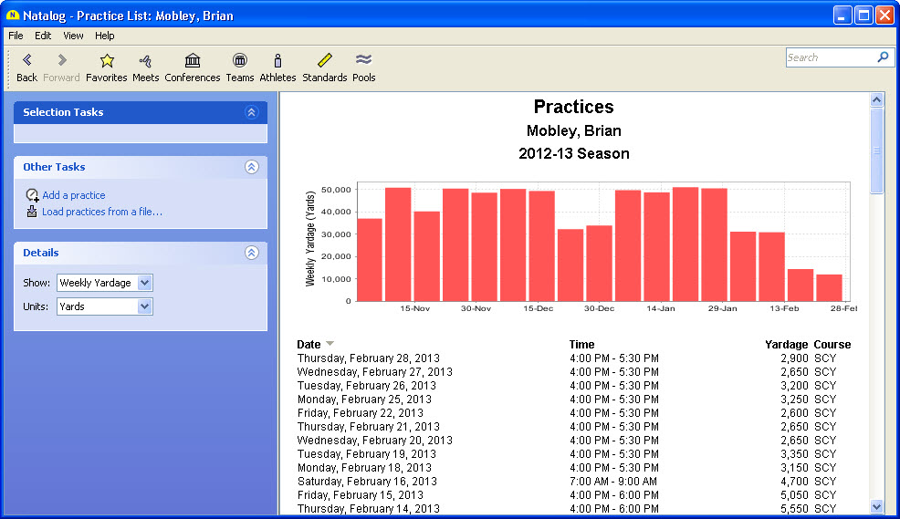 Log an athlete or team's practices and chart the distance. Keep track of past workouts or write new ones. Type in workouts or copy and paste sets from one practice to another; build ladders; rate sets; tag sets; and find sets by distance, duration, or stroke. Keep attendance and log stats from test sets.