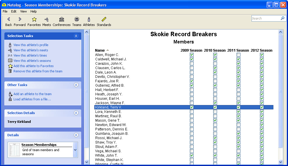 Keep track of your team members from season to season. Great for age group, high school, college, masters, and summer leagues.