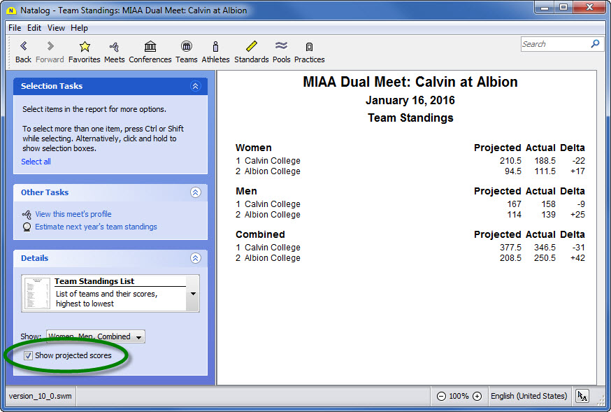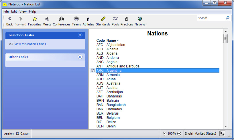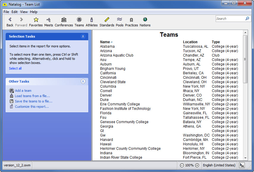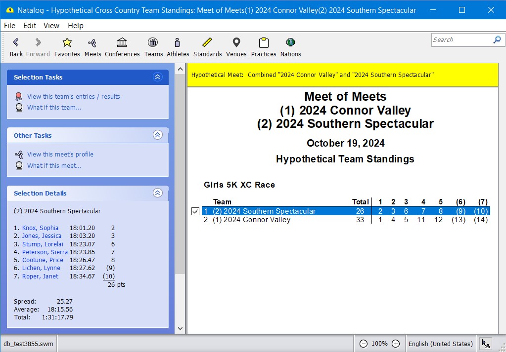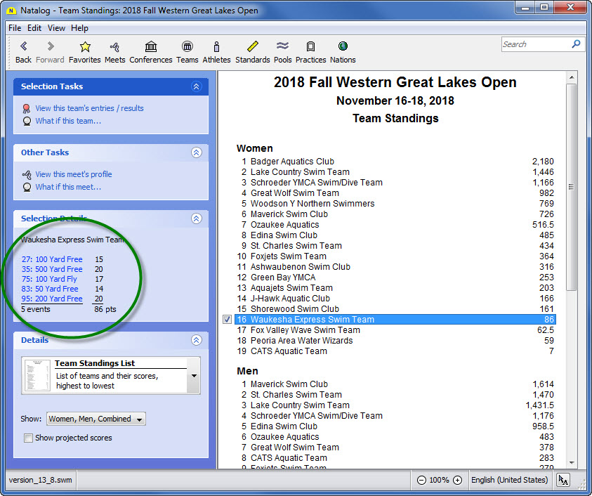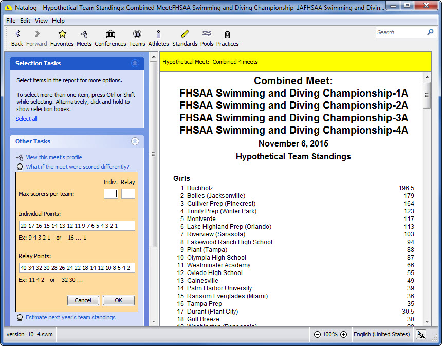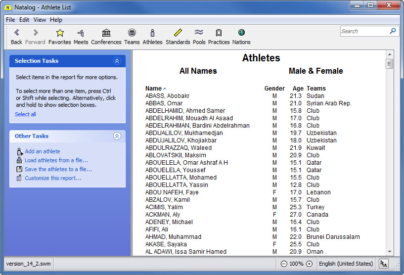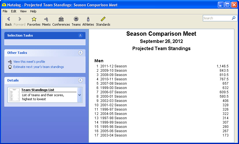 - Team, conference, pool, national, and world performer rankings (based on your loaded results) are now available as columns on the top times page