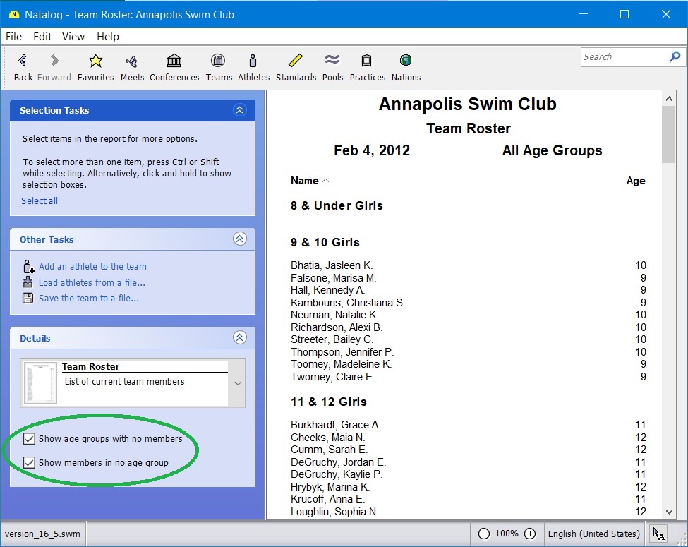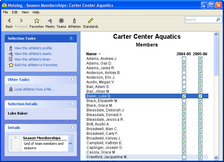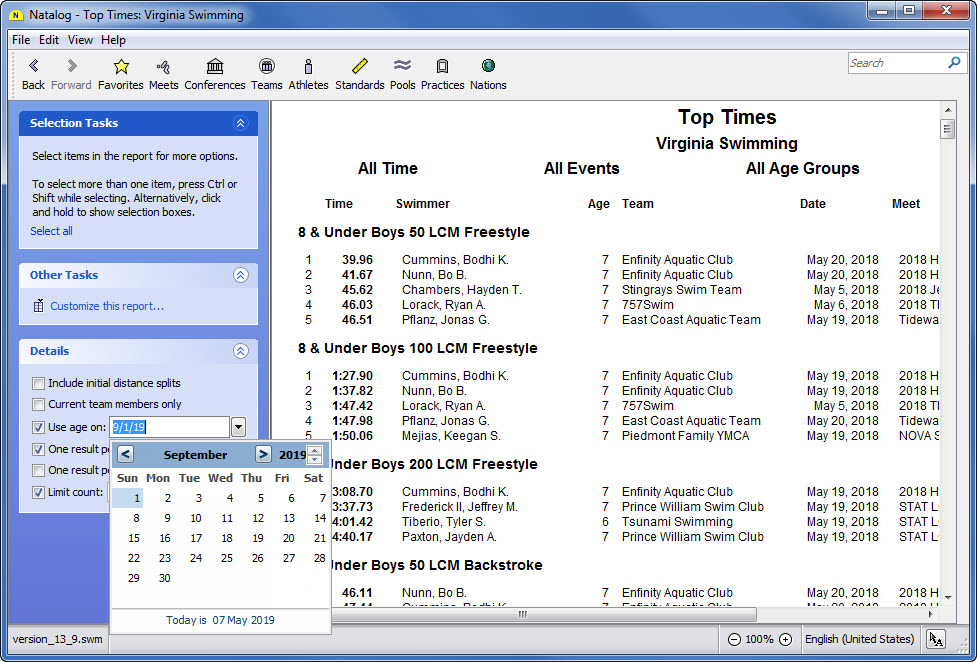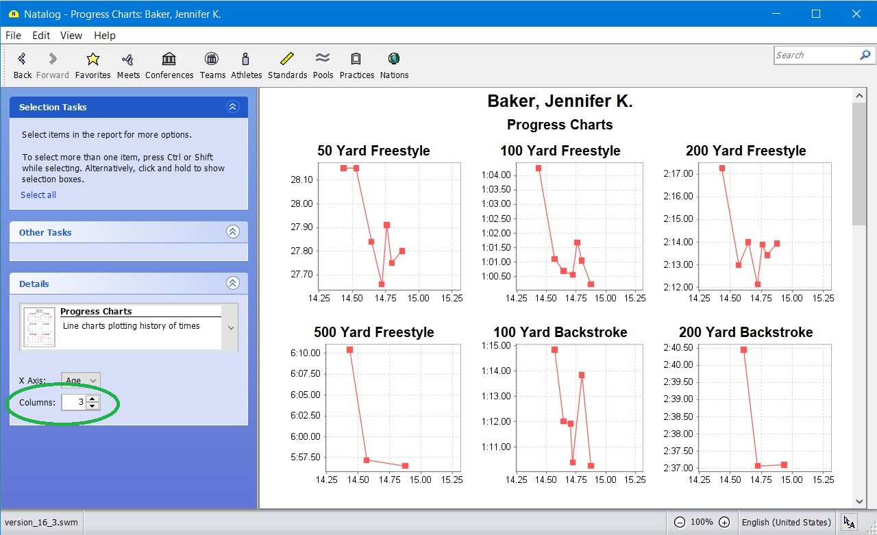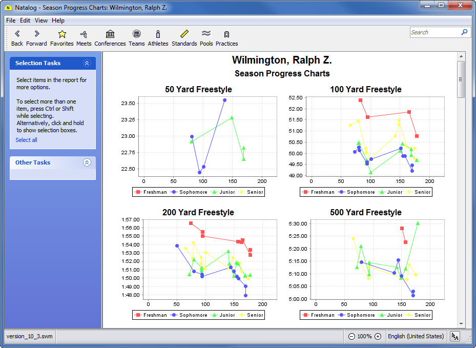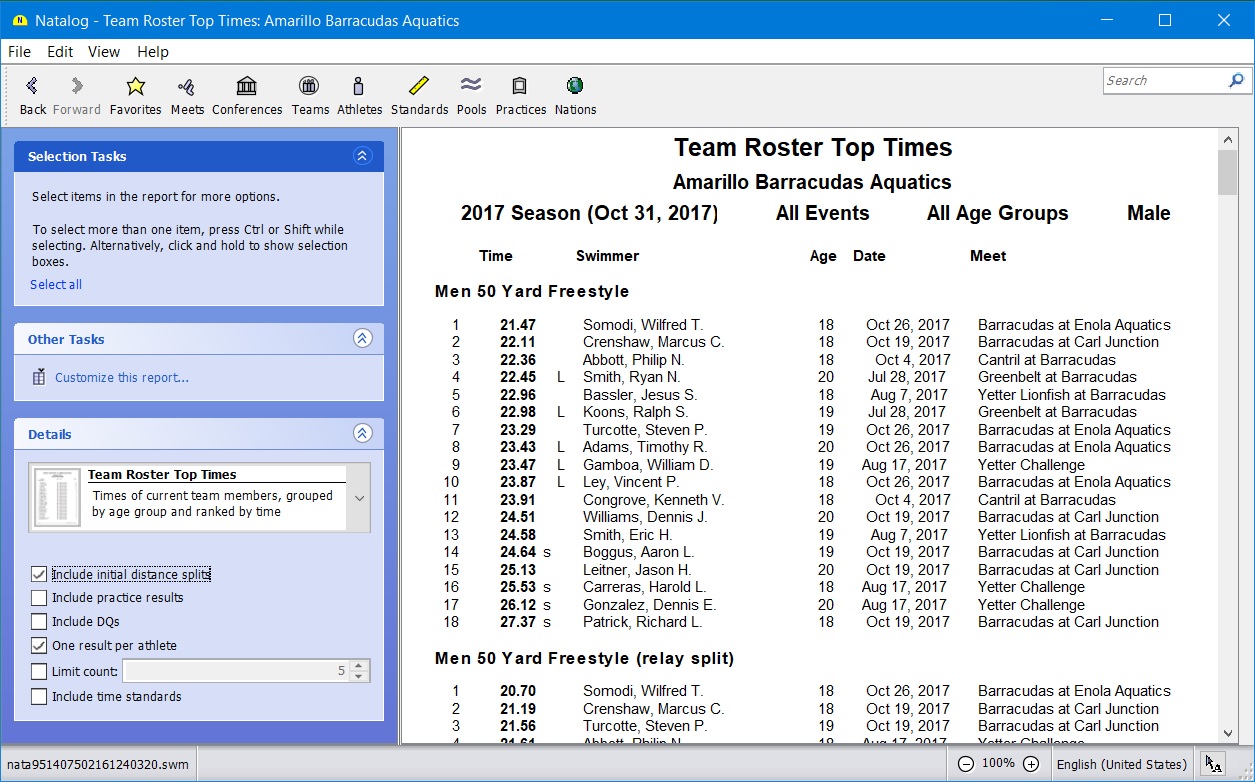 - Ability to choose the time standards to show with a swimmer's top times
