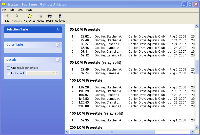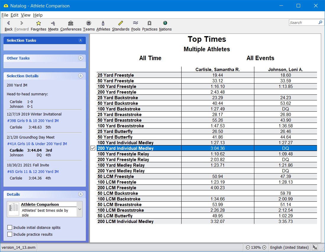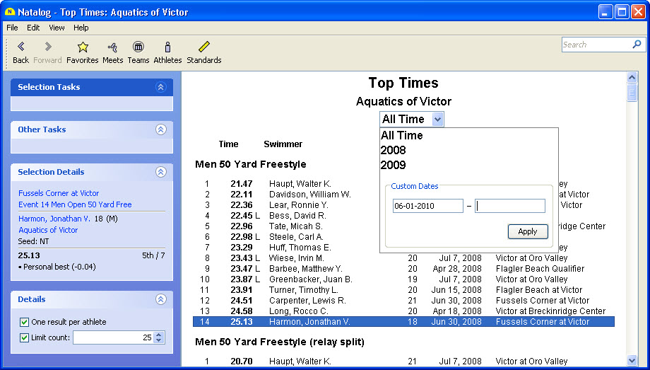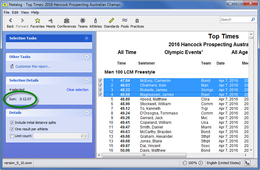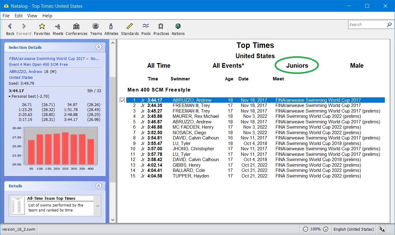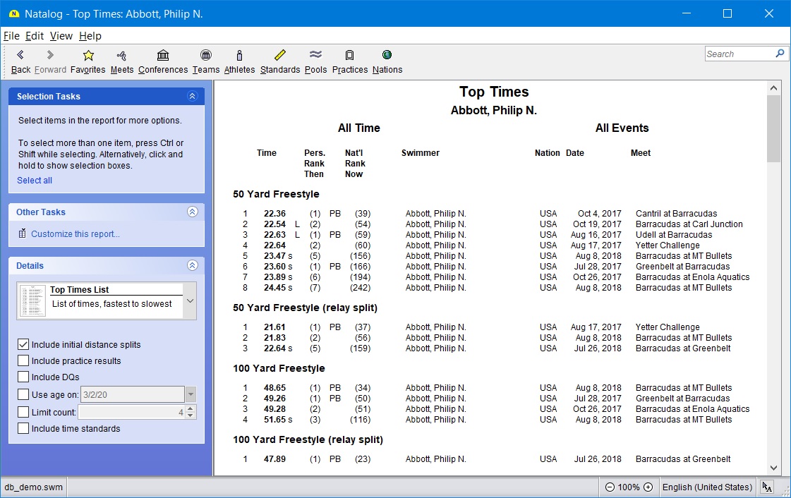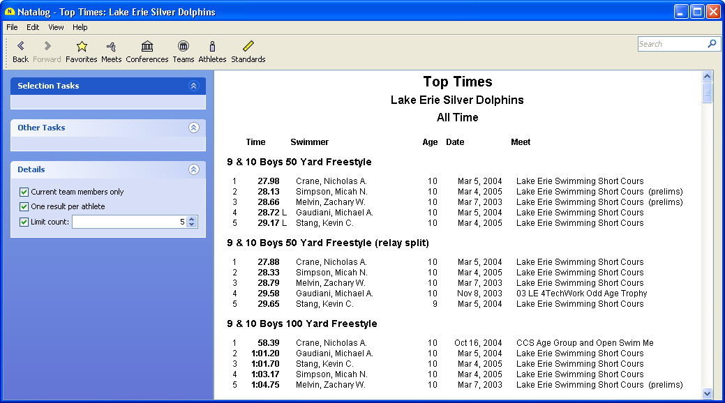 - Ability to show top times for a selected group of athletes