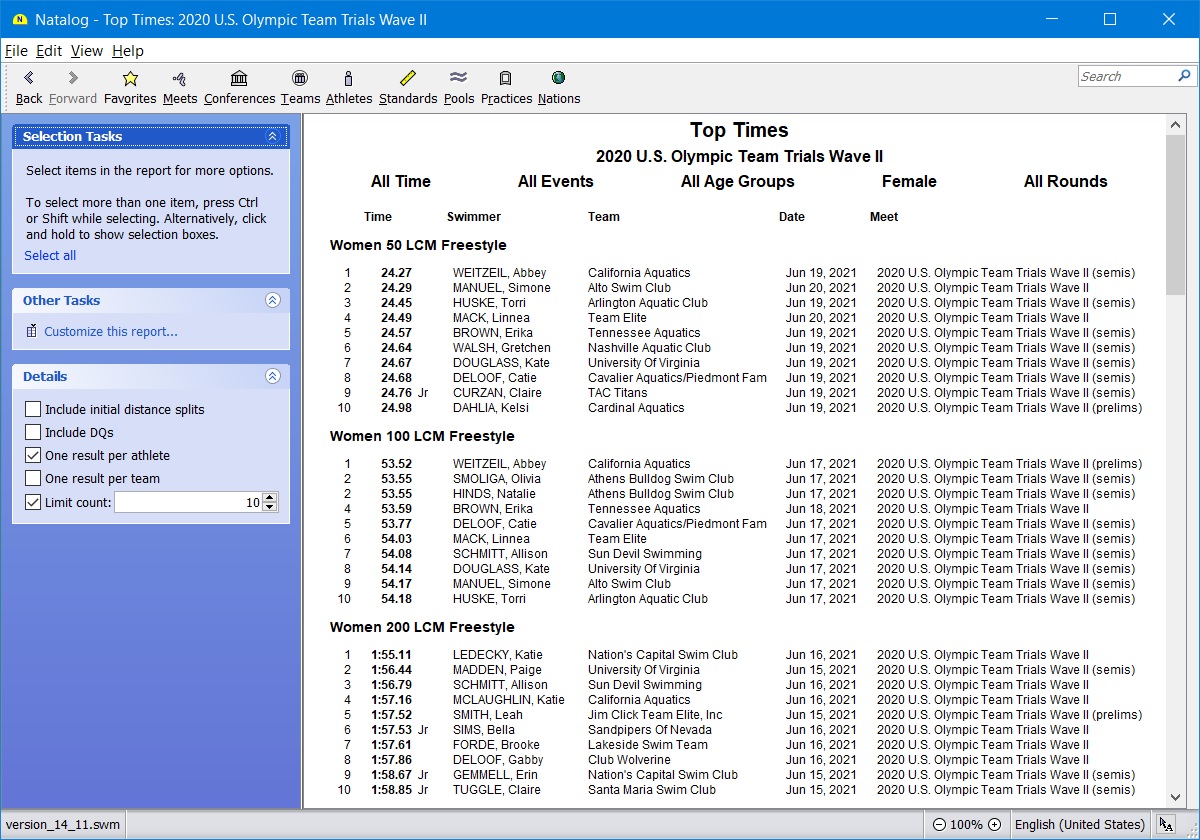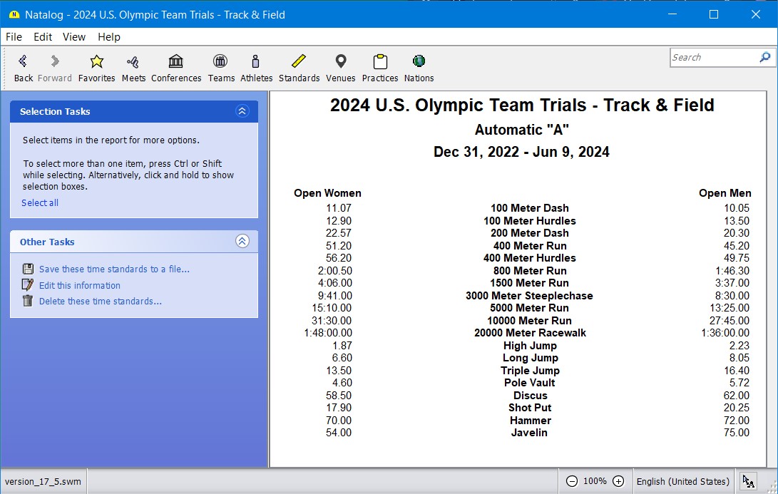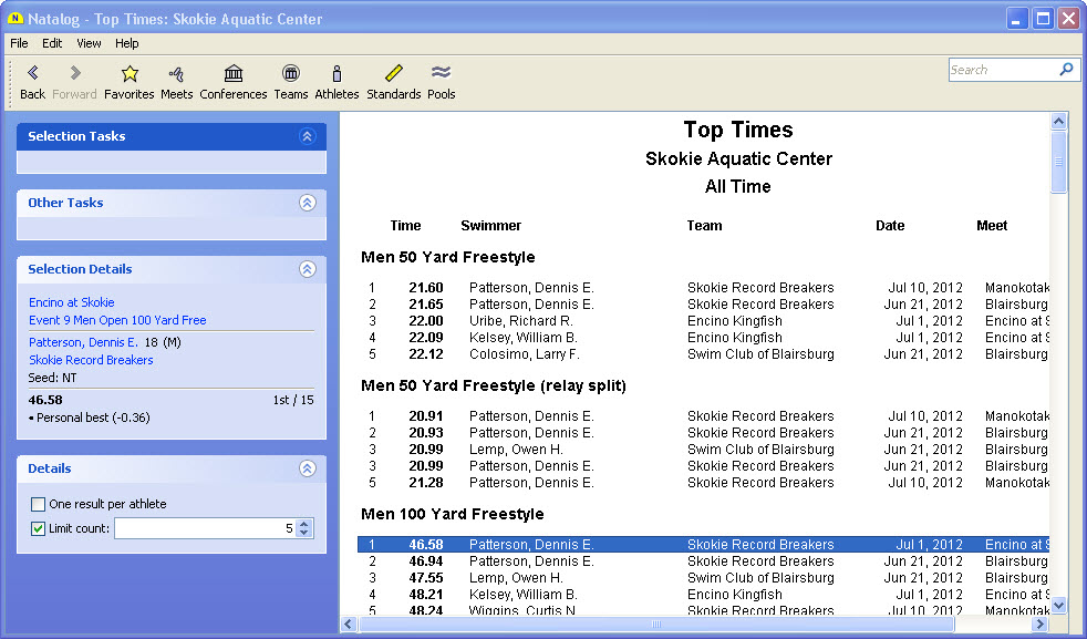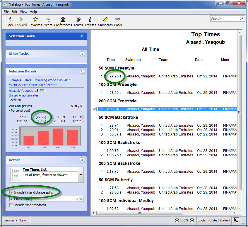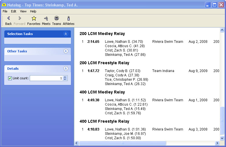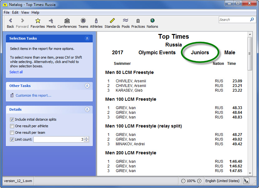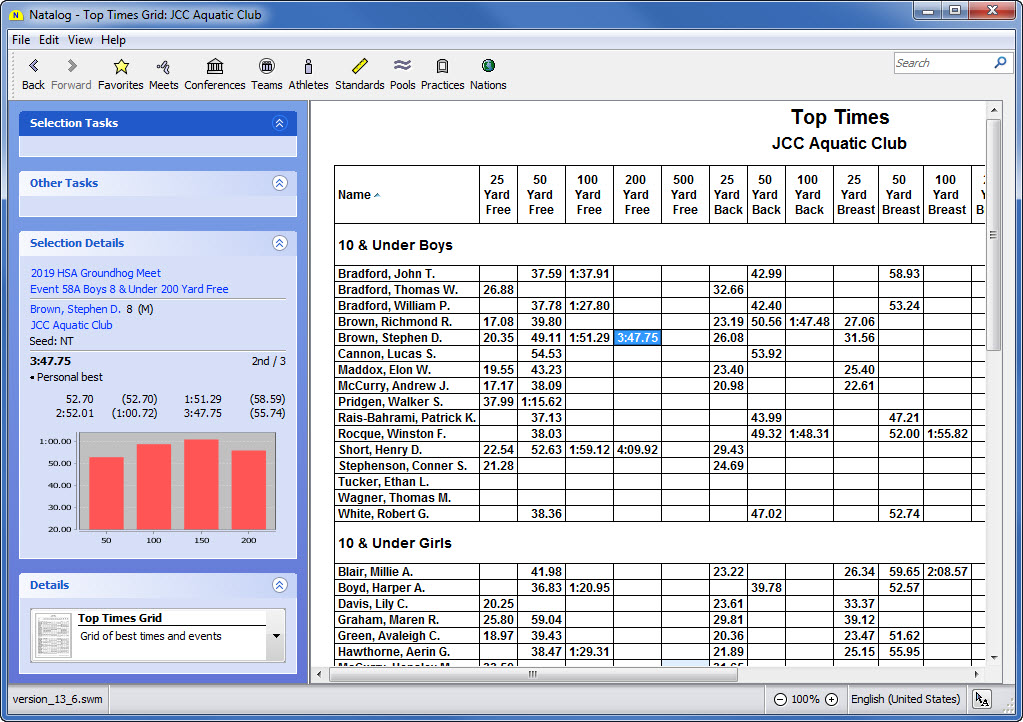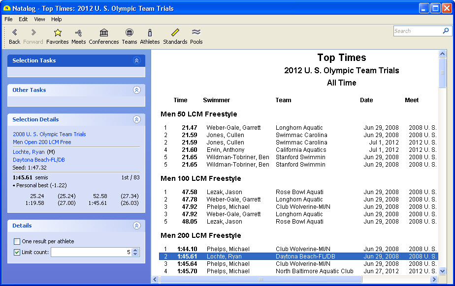 - Ability to show top times for a selected group of athletes