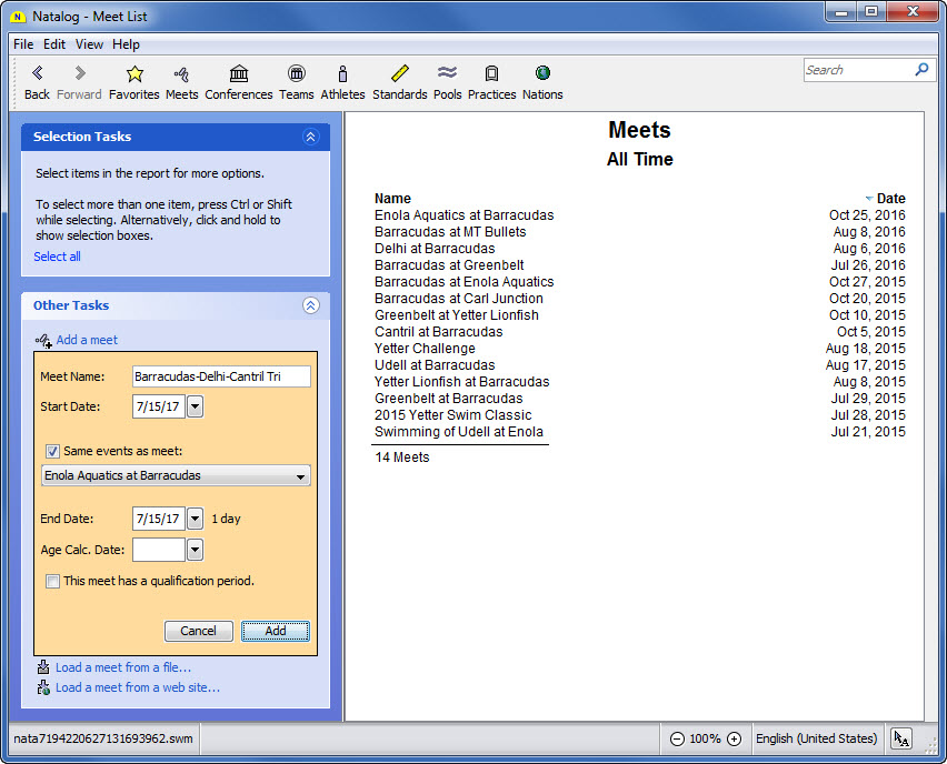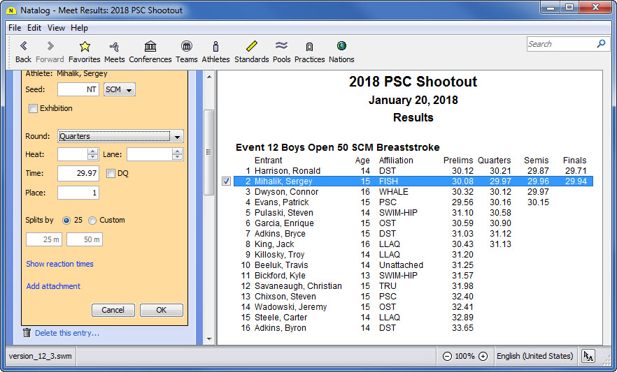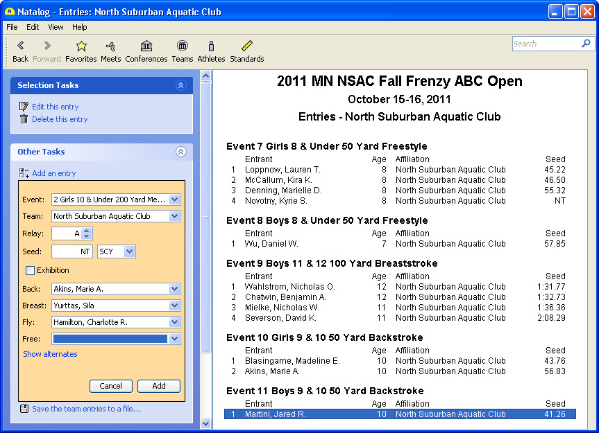 - Ability to save meet entries to an SDIF file