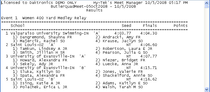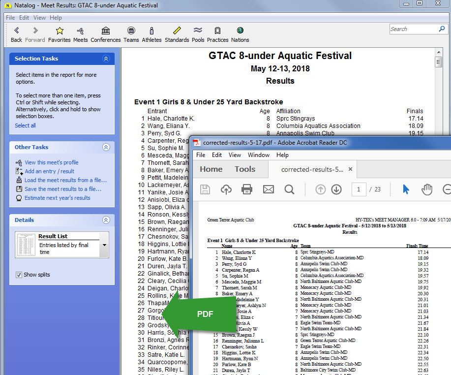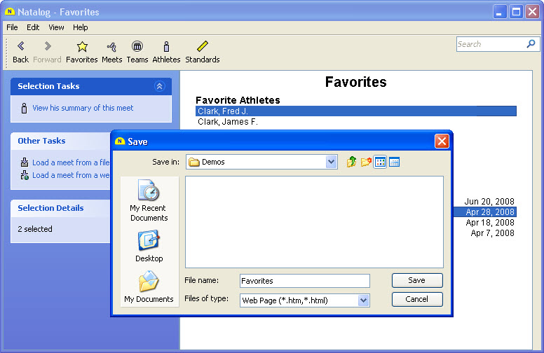 - Saving meet results to a delimited file