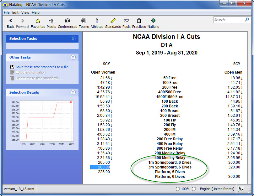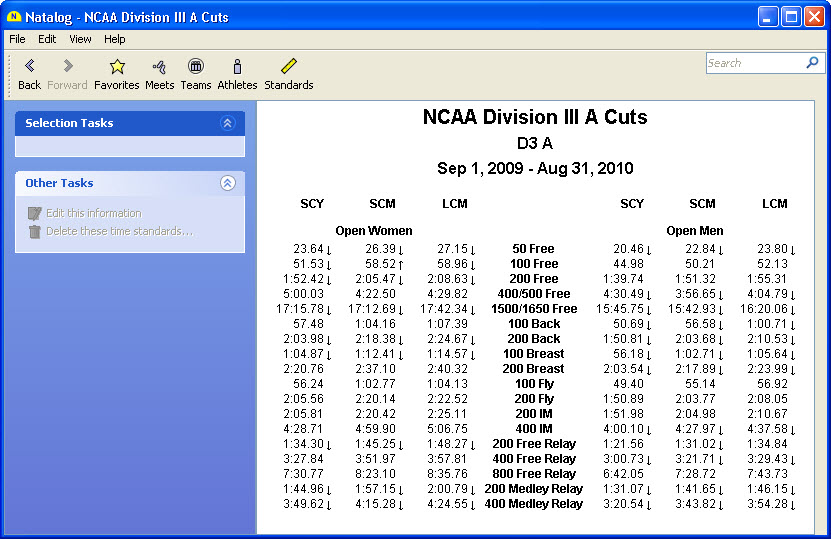 - NCAA Swimming A and B cuts for the 2008, 2009, and 2010 seasons