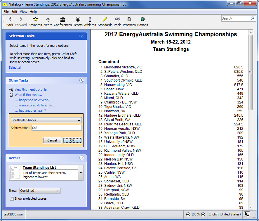 - Ability to save meet results to an SDIF file