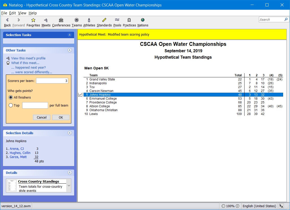 - Analysis: What if another team is in the meet?