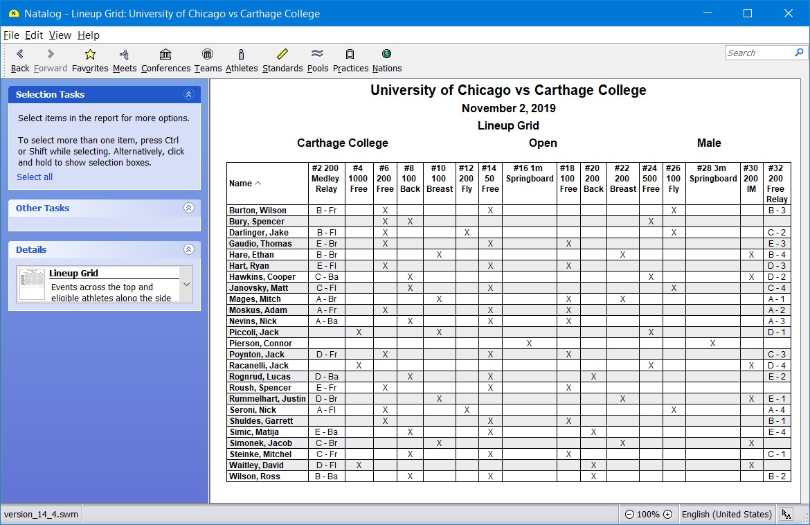 - Ability to mark an athlete unavailable for a meet or for certain events on the lineup grid