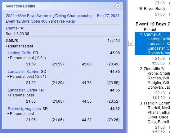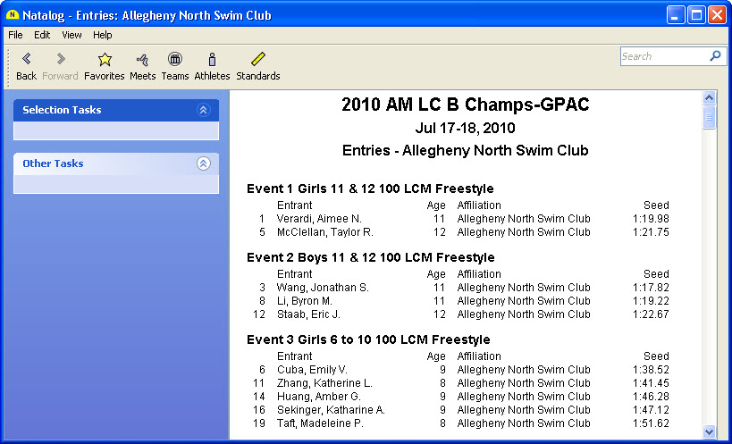 - Meet entries page (psych sheet)