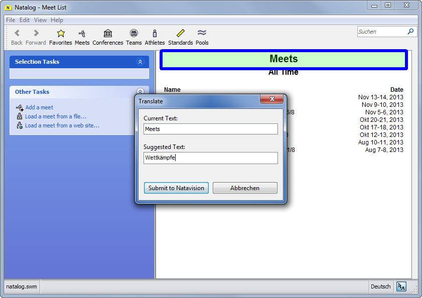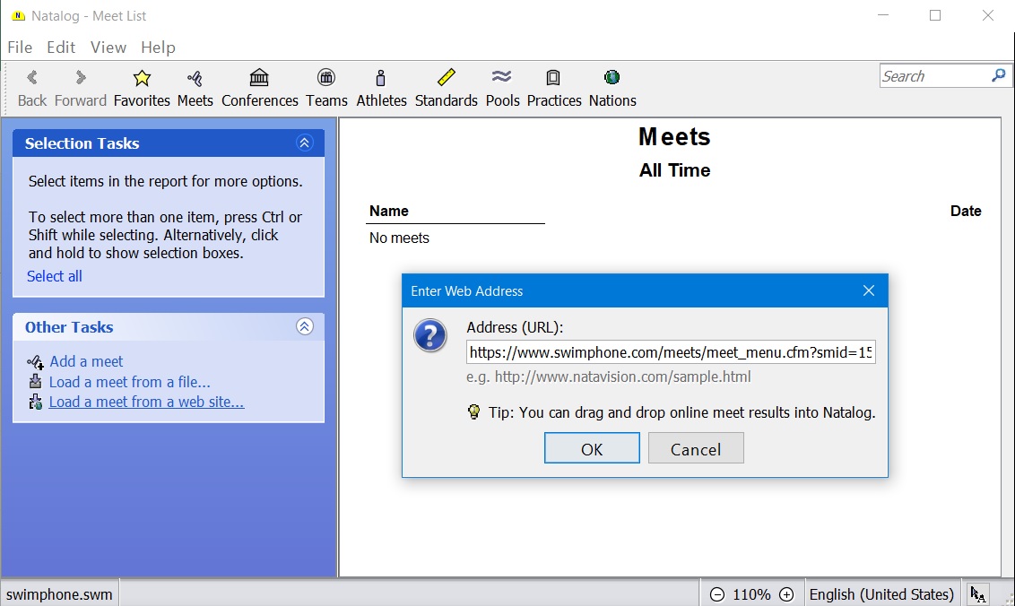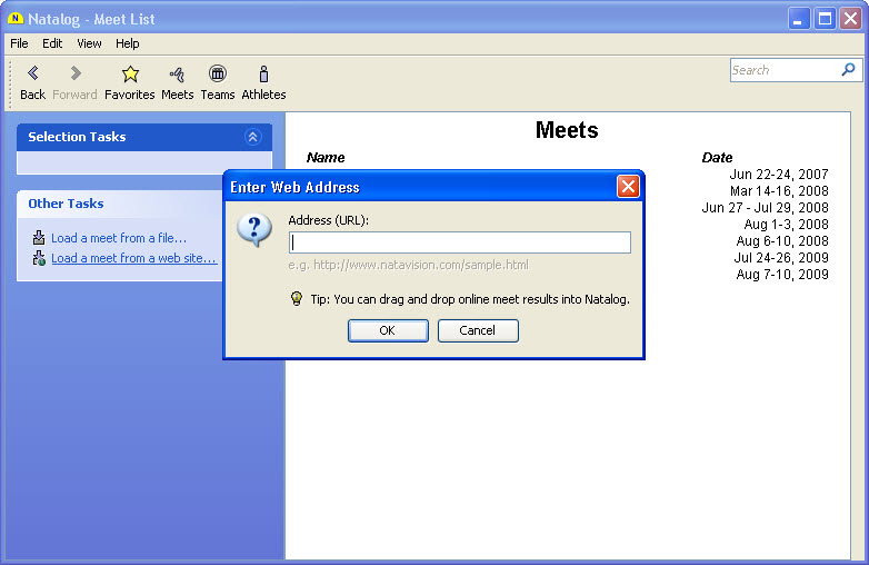 - Ability to drag and drop meet files into Natalog