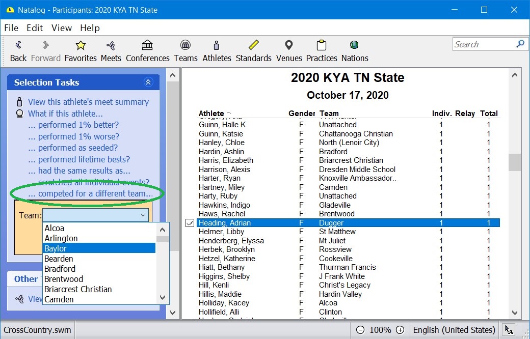 - Meet Analysis: What if some athletes competed for a different team?