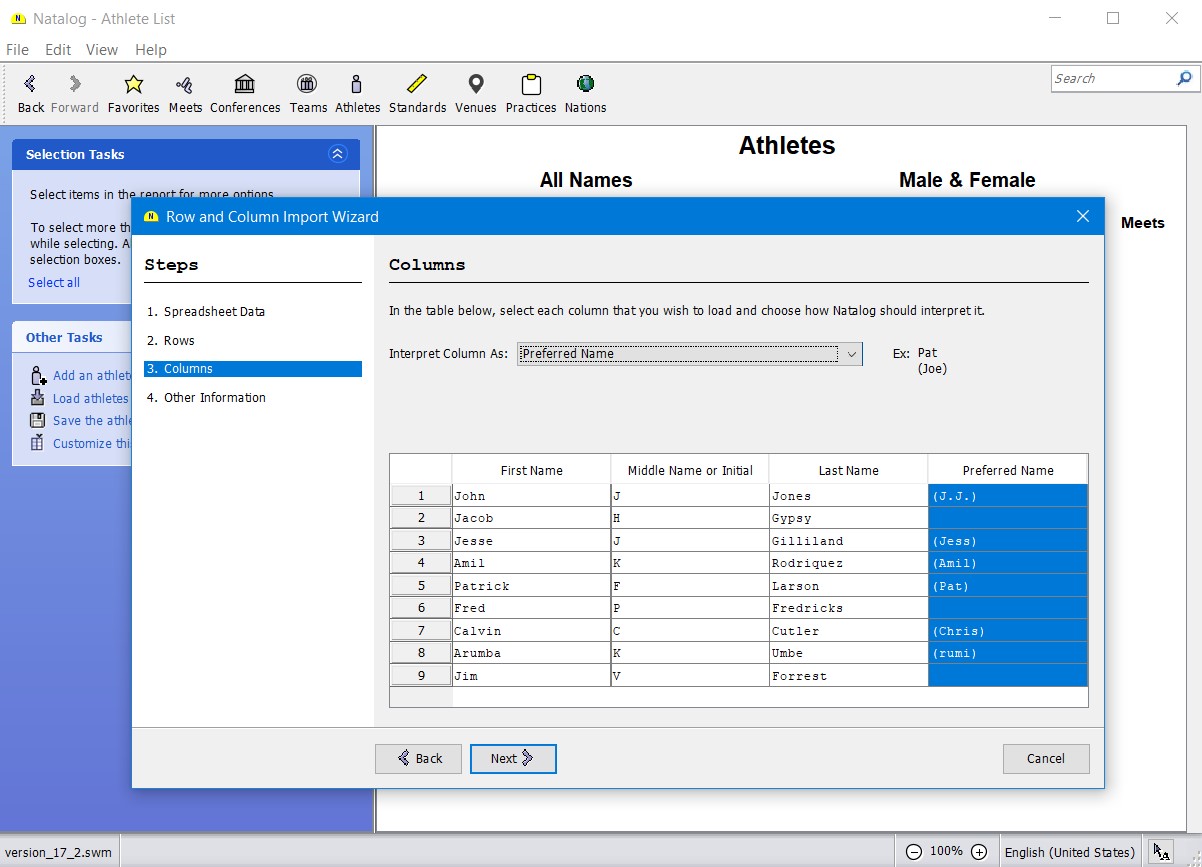 - Importing of Hy-Tek meet event files