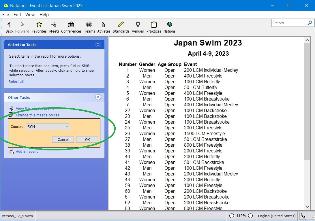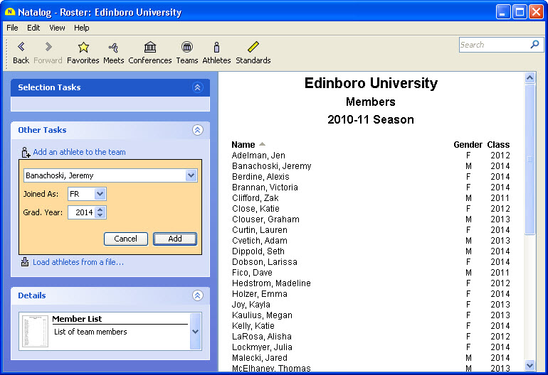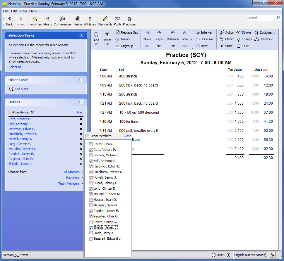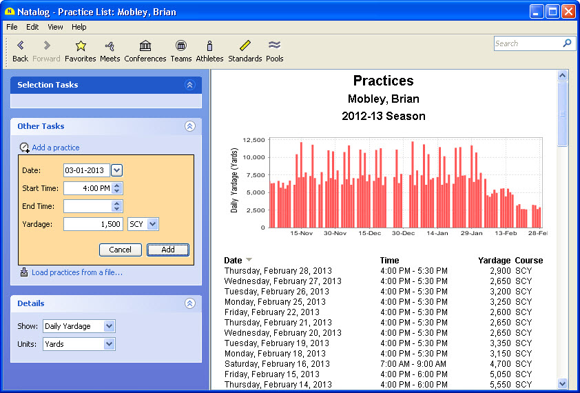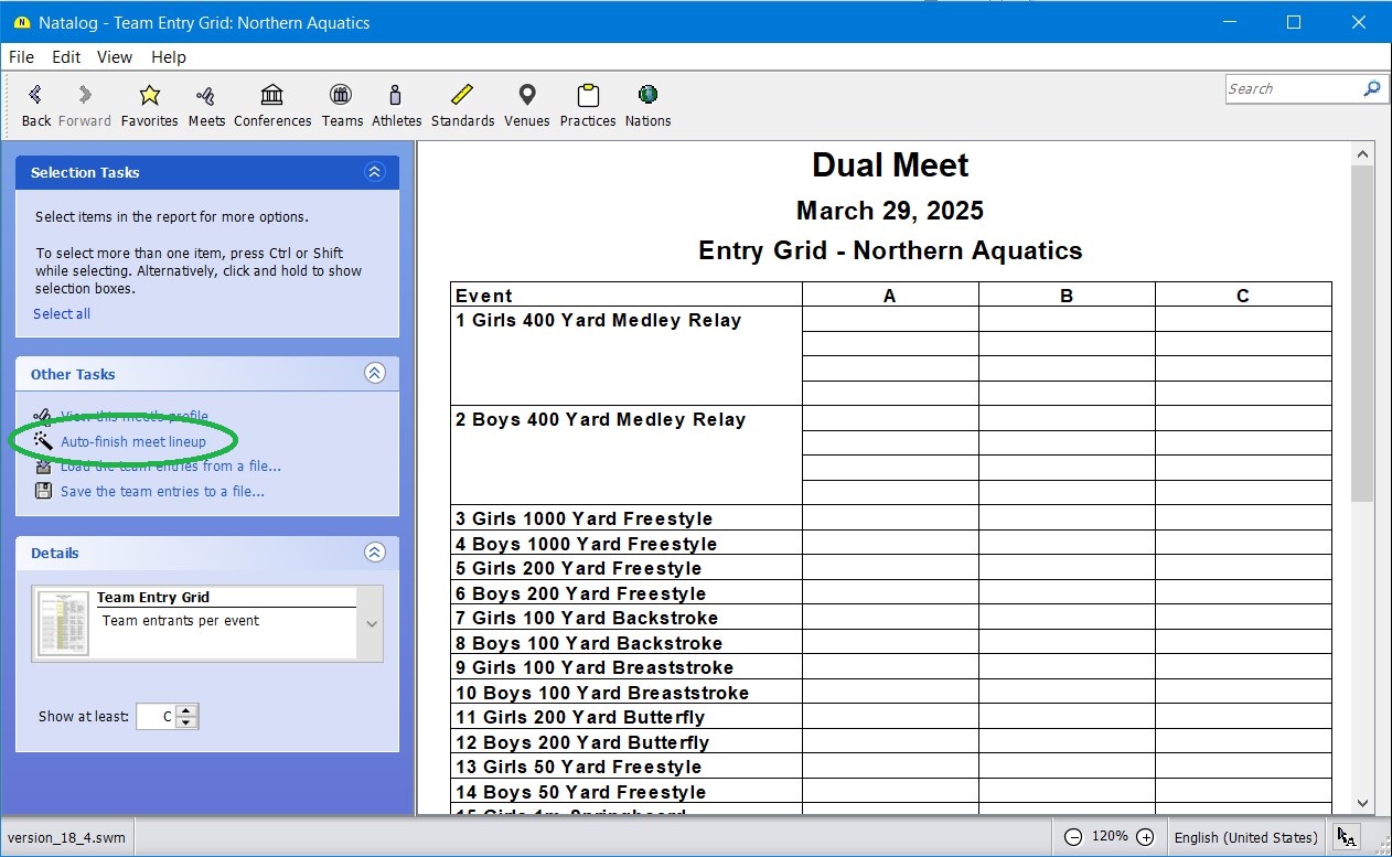 - Ability to load an SDIF meet registration file