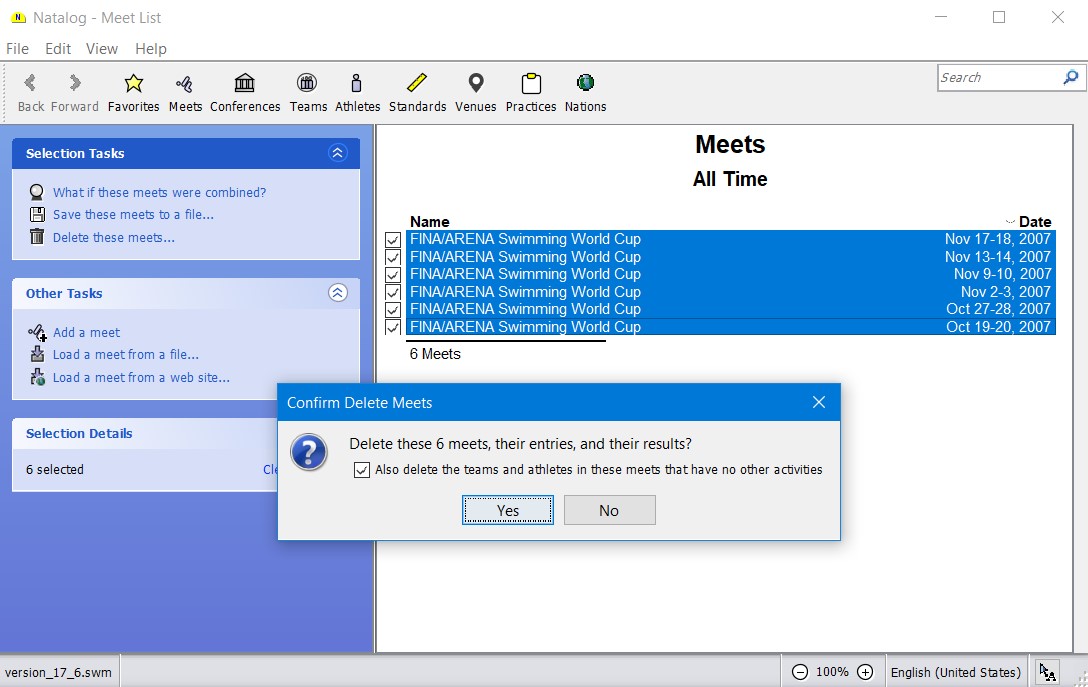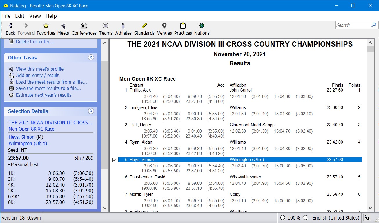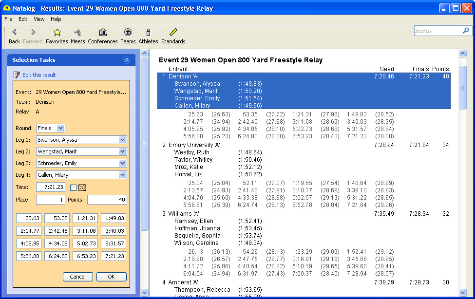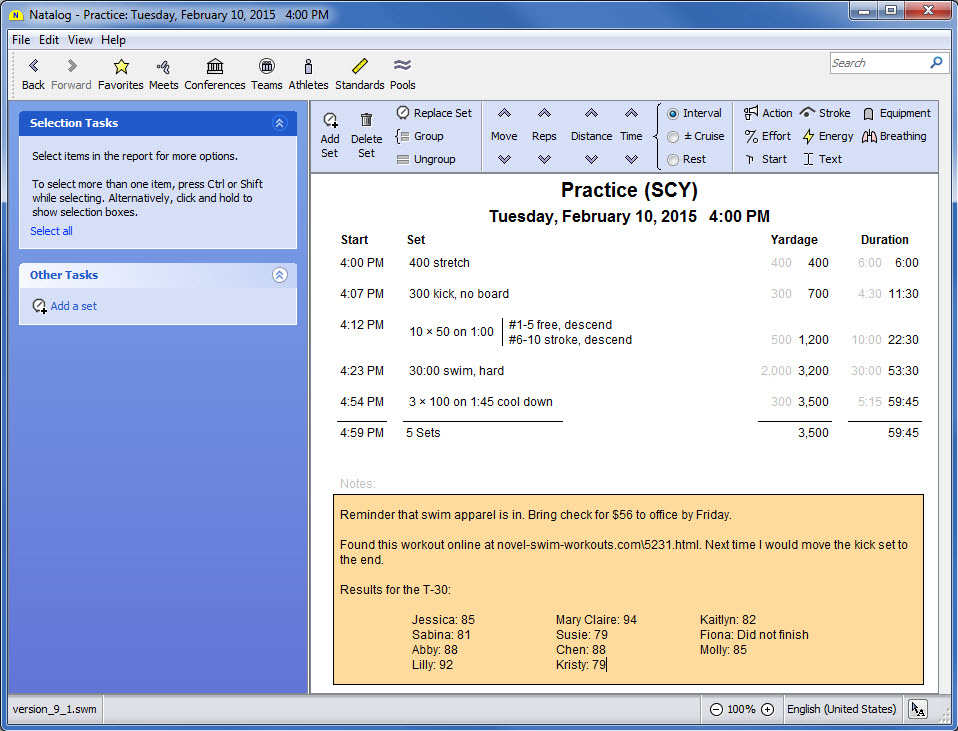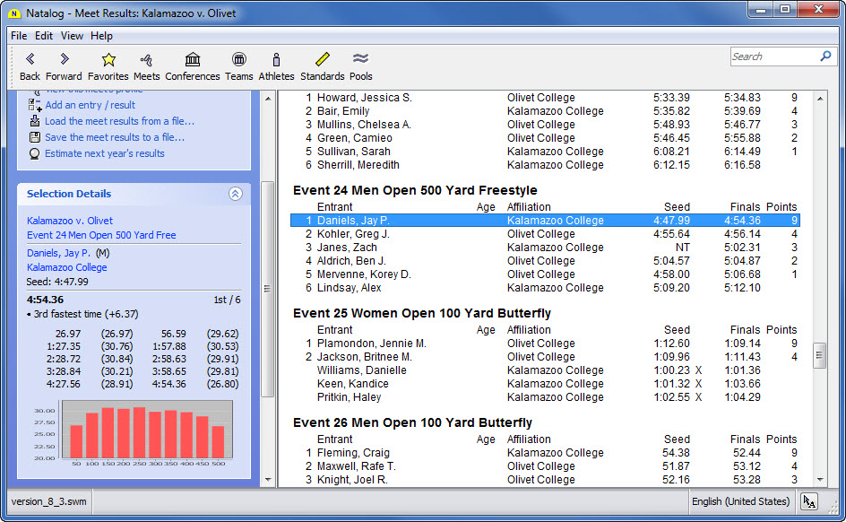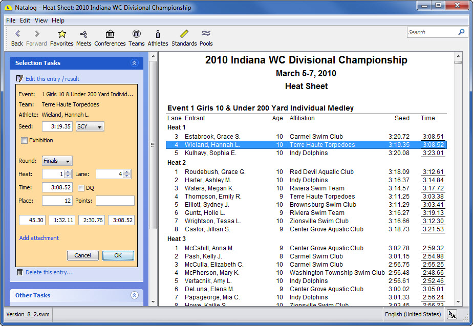 - Ability to load Hy-Tek .hy3 (meet results) files
