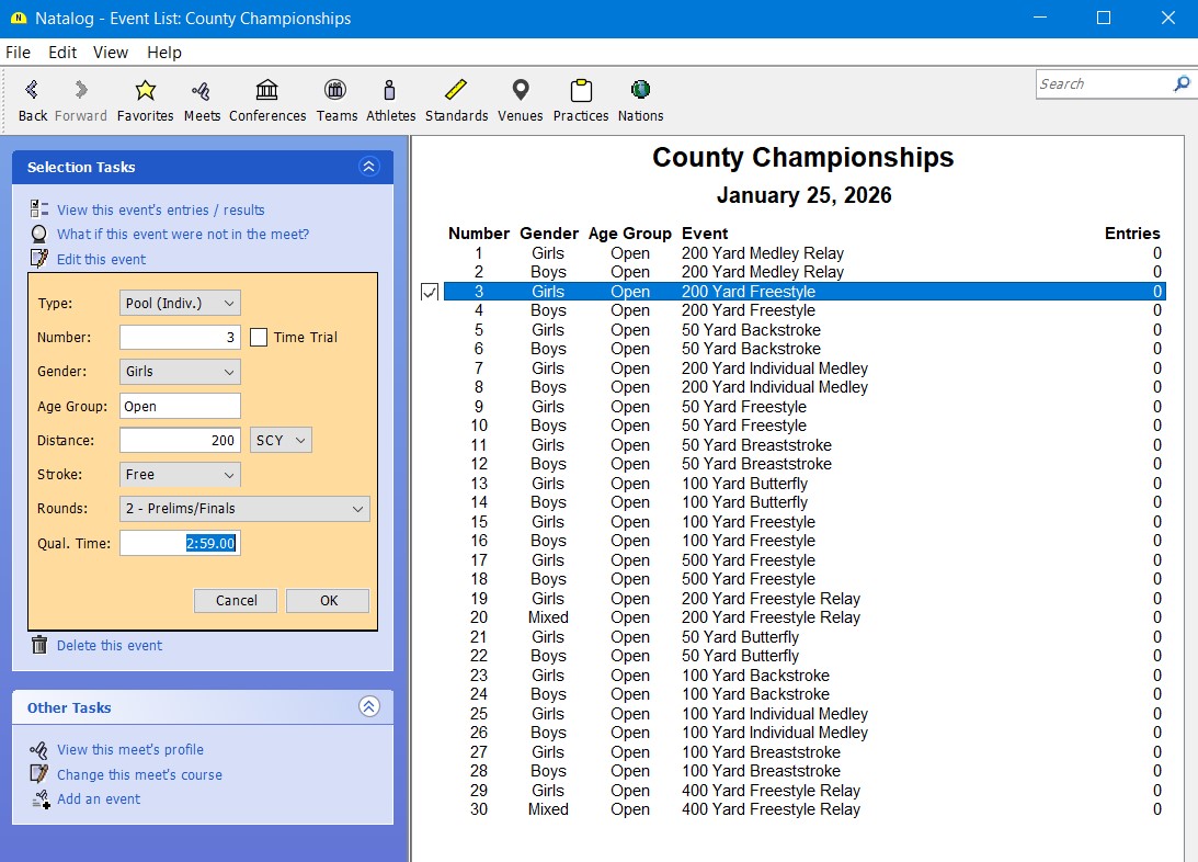 - Control of athlete individual, relay, and total entry limits when adding or editing a meet