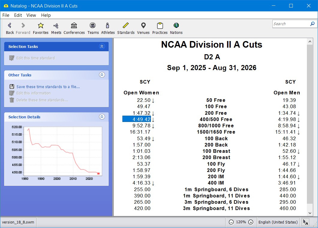 - 2025-26 NCAA Division II qualifying times included