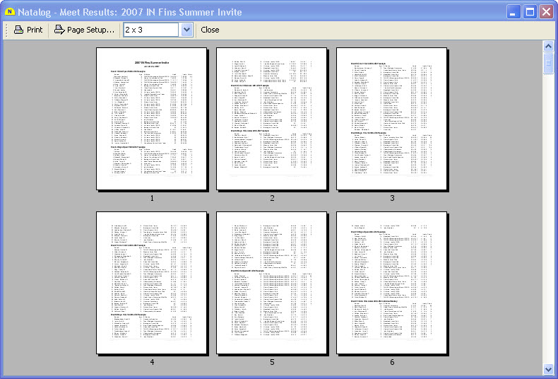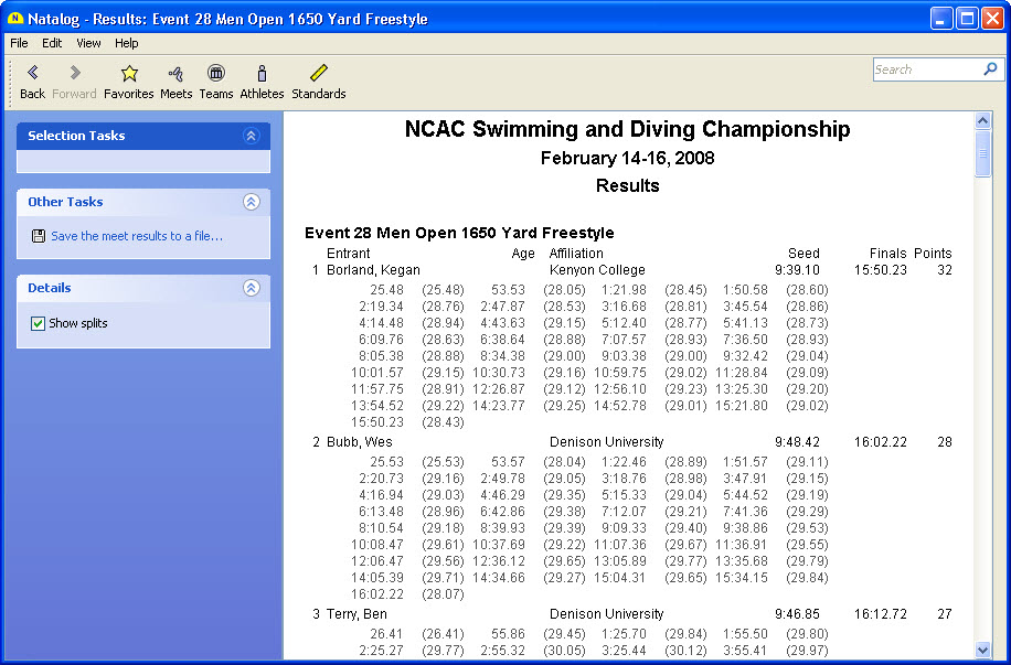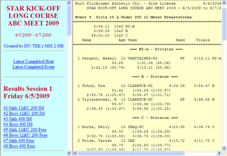 - Meet results page