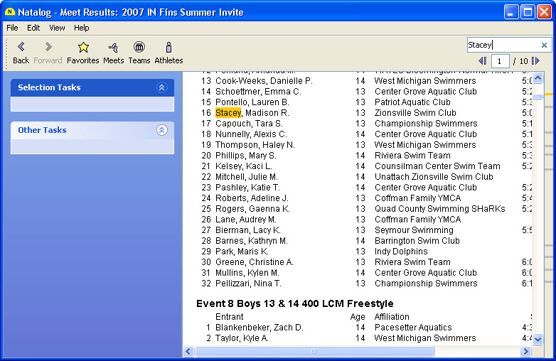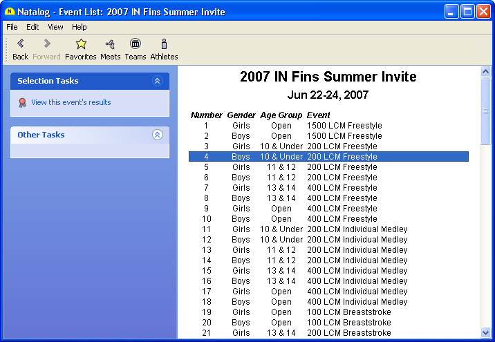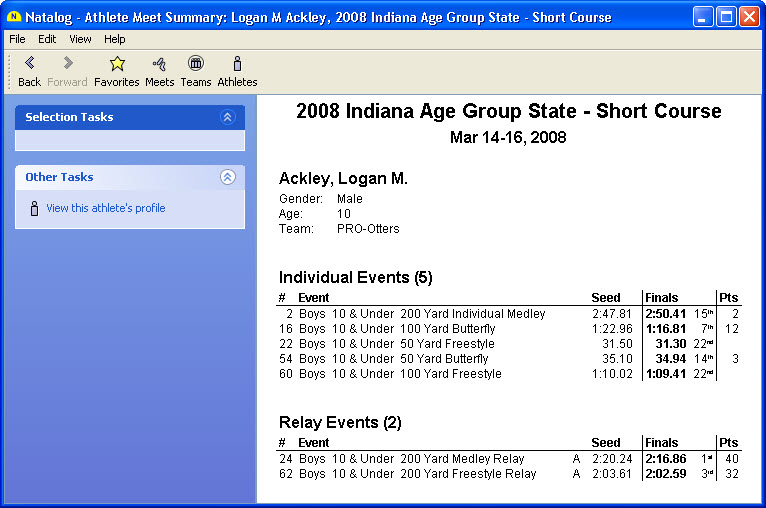- Ability to select events on a swimmer's meet summary page