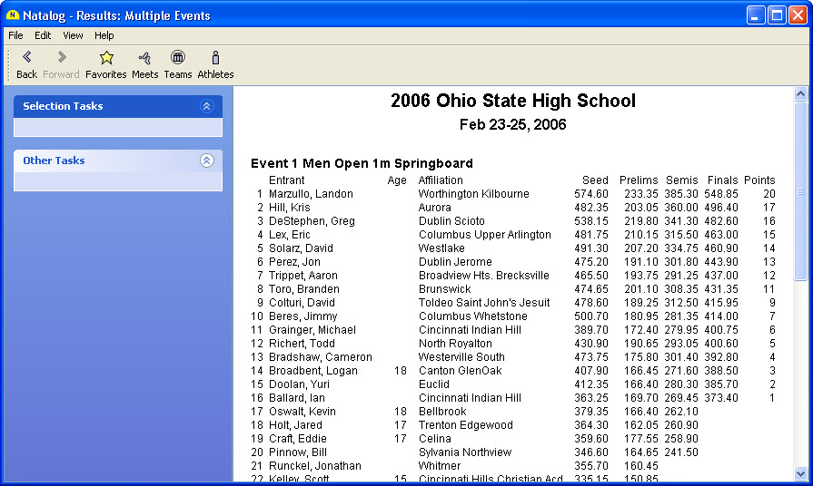 - Ability to show results for selected meet events