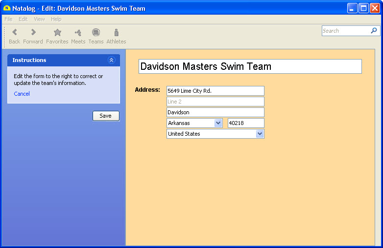 - Ability to edit a swim team's name and address