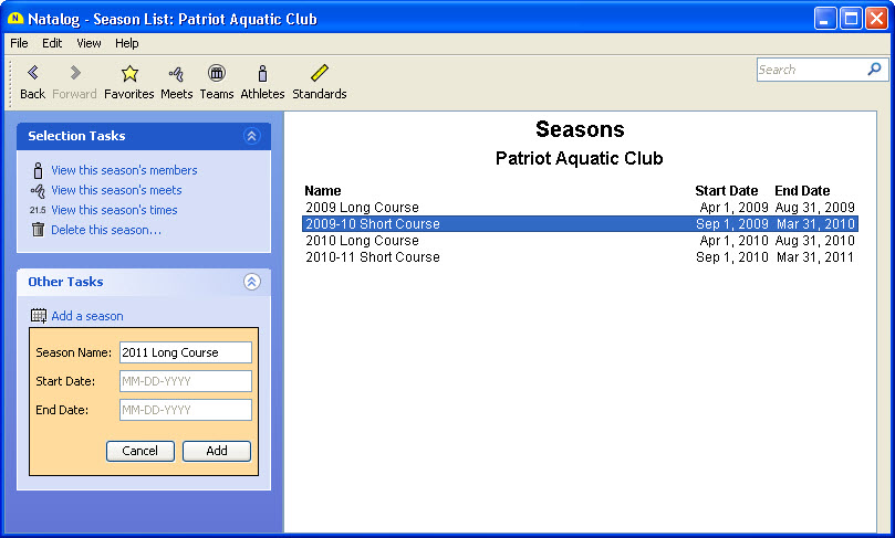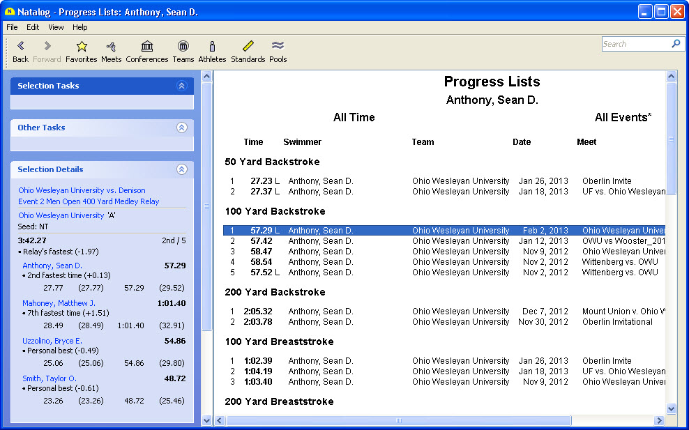 - Ability to show time standards with a swimmer's top times