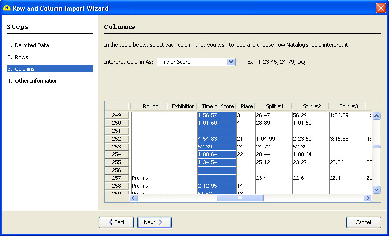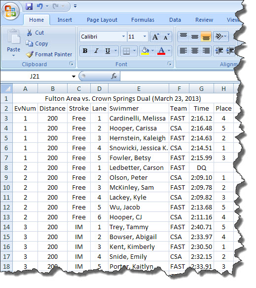 - Loading meet results from a delimited file