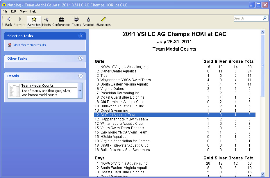 - Team medal counts page